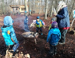 Wir befinden uns noch mitten im Winter. Daher bietet sich „Feuer“ als Thema an. Zusammen mit den Kindern finden wir heraus, wo Feuer uns überall im Alltag begegnet. Wir zünden im Morgenkreis eine Kerze an, wärmen uns am Holzofen in der Hütte, kochen über offenem Feuer unser leckeres Essen...