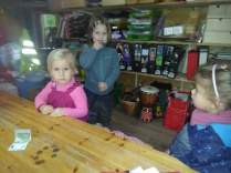 unserer Hütte hängen Handschuhe am warmen Ofen, tropfen Jacken, matschige Stiefel stehen im Eingangsbereich. Seit Mittwoch ist auch die Kuschelecke wieder eröffnet: wem der Regen doch irgendwann auf