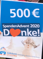 Insgesamt wurden 179 Bewerbungen für eine Spende eingereicht. 125 regionale Vereine und Institutionen wurden von den Regionalkuratorien, bestehend aus Aufsichtsräten, Beiräten und den Regional-Direktoren der Volksbank, im Dezember 2017 ausgewählt. Einen Spendenscheck über 1000 Euro konnte auch der Waldkindergarten "Räuberhöhle" Herrenberg e.V. bei der Abschlussveranstaltung am 18. Dezember 2017 entgegennehmen. Dank dieser großzügigen Spende kann die Anschaffung einer Werkbank für unsere Kinder nun in Angriff genommen werden.